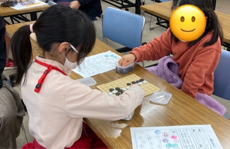 初めて会った子同士。でもすぐに囲碁を通じて仲良くなれます。