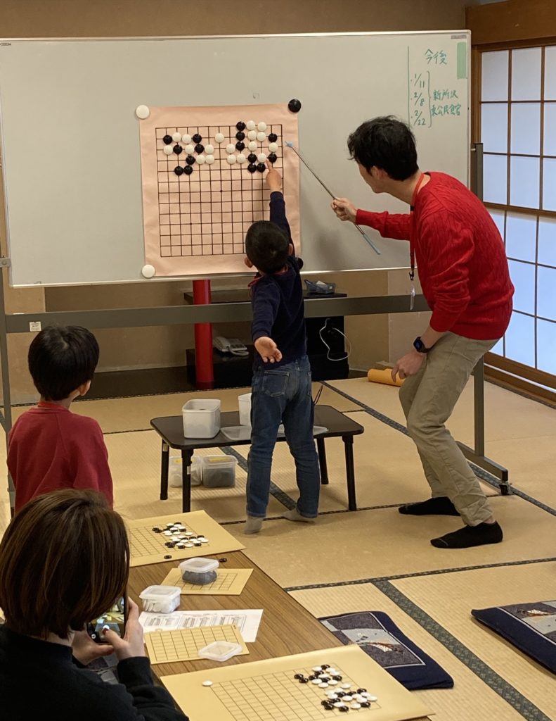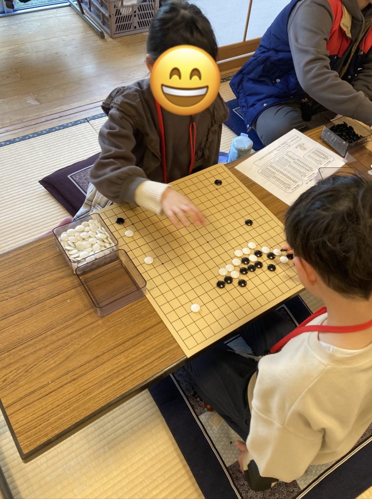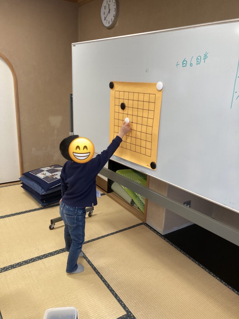 今回の囲碁教室は、はじめての「和室」で開催しました!お子さんによっては座ってうつのが難しいかもしれないと思って今まで避けていましたが、新年一発目ということもあって、チャレンジしてみました!
